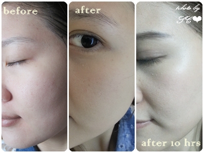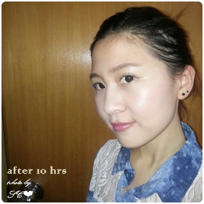 這天使用BB Cream 配合粉餅後,將近10個小時都沒有再補妝,但是回到家妝容還是保持得很完好,大愛❤❤