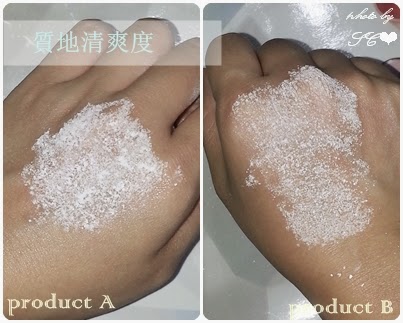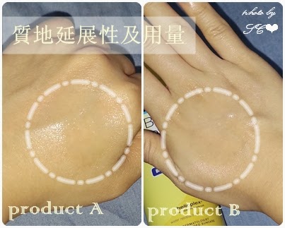 測試後發現產品A一開始噴出來覆蓋的肌膚面積較大,但是延展性不太足夠,抹了幾下就又要再噴一下其他地方才能全部均勻覆蓋皮膚,需要的用量就大大增加了