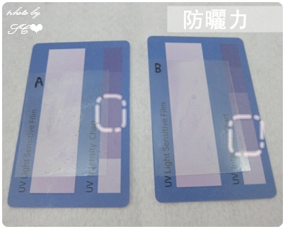 首先測試一下防曬力,利用圖中的紫外線測試卡測試其防曬力
