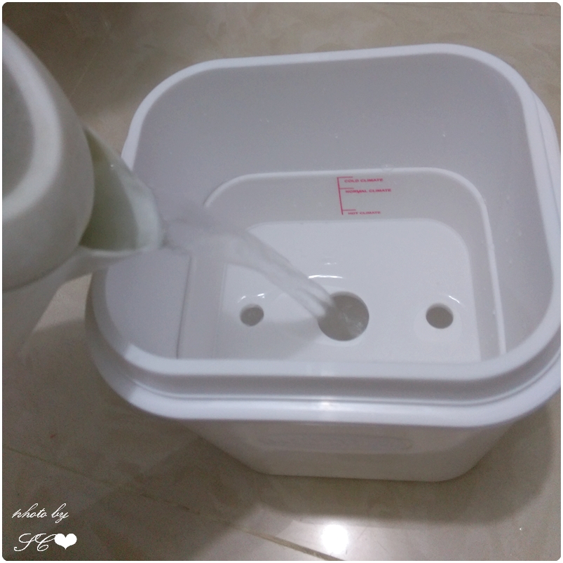 (p.s. 乳酪器中有標示不同地區氣候的地區,所需要的滾水份量不同,分為冷、熱及一般天氣地區,香港屬於一般氣候地區,所以加到normal climate那條線就可以了)