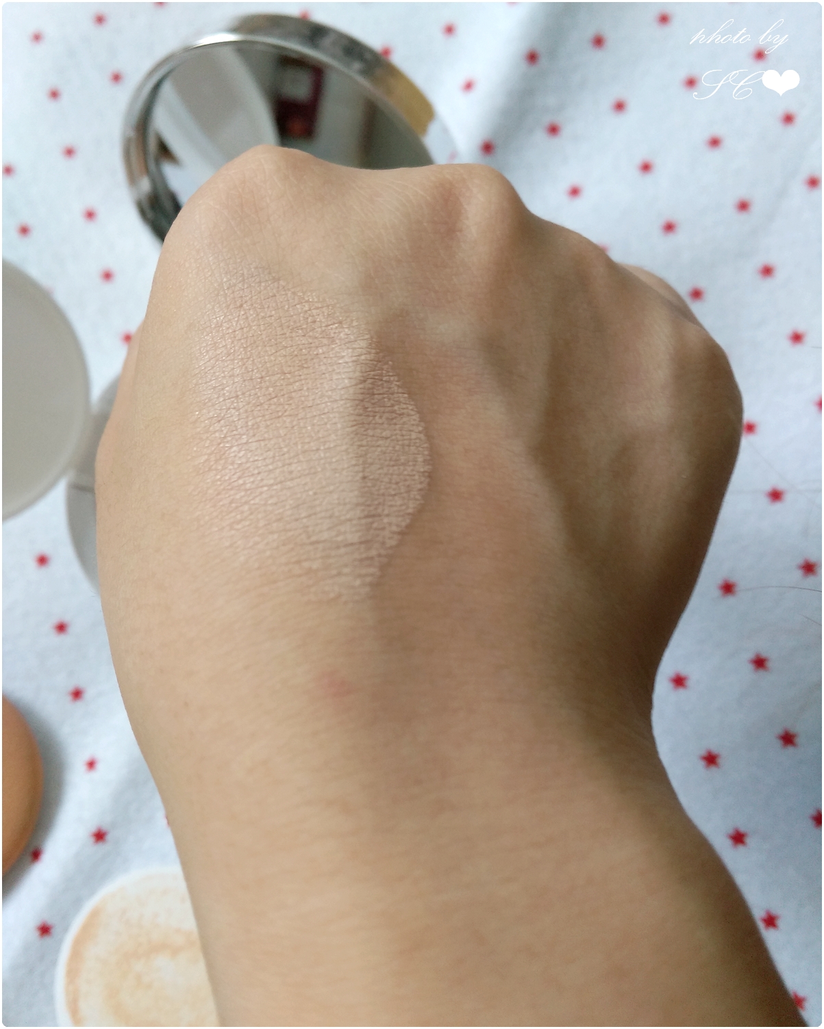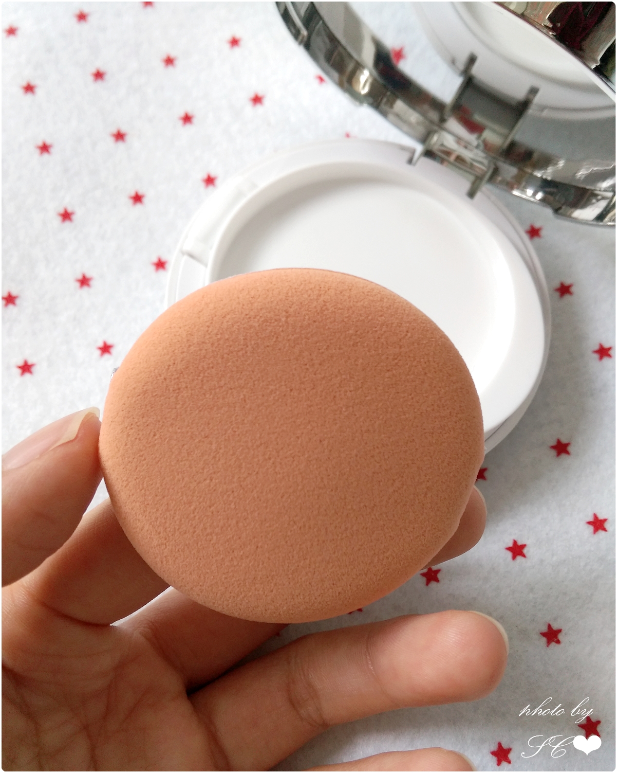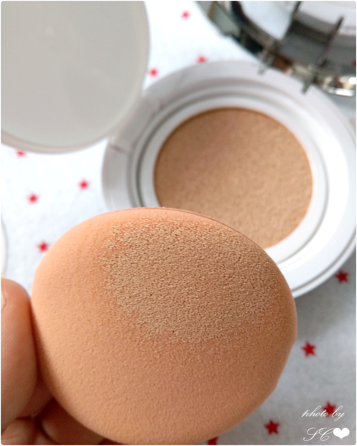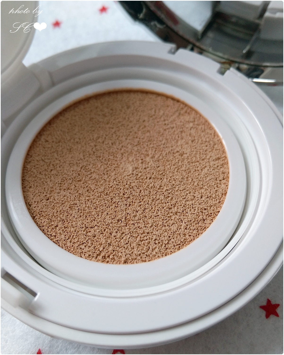 還用膠紙黏貼封住內裡的氣墊粉底,使內裡的粉底不會那麼容易變乾
