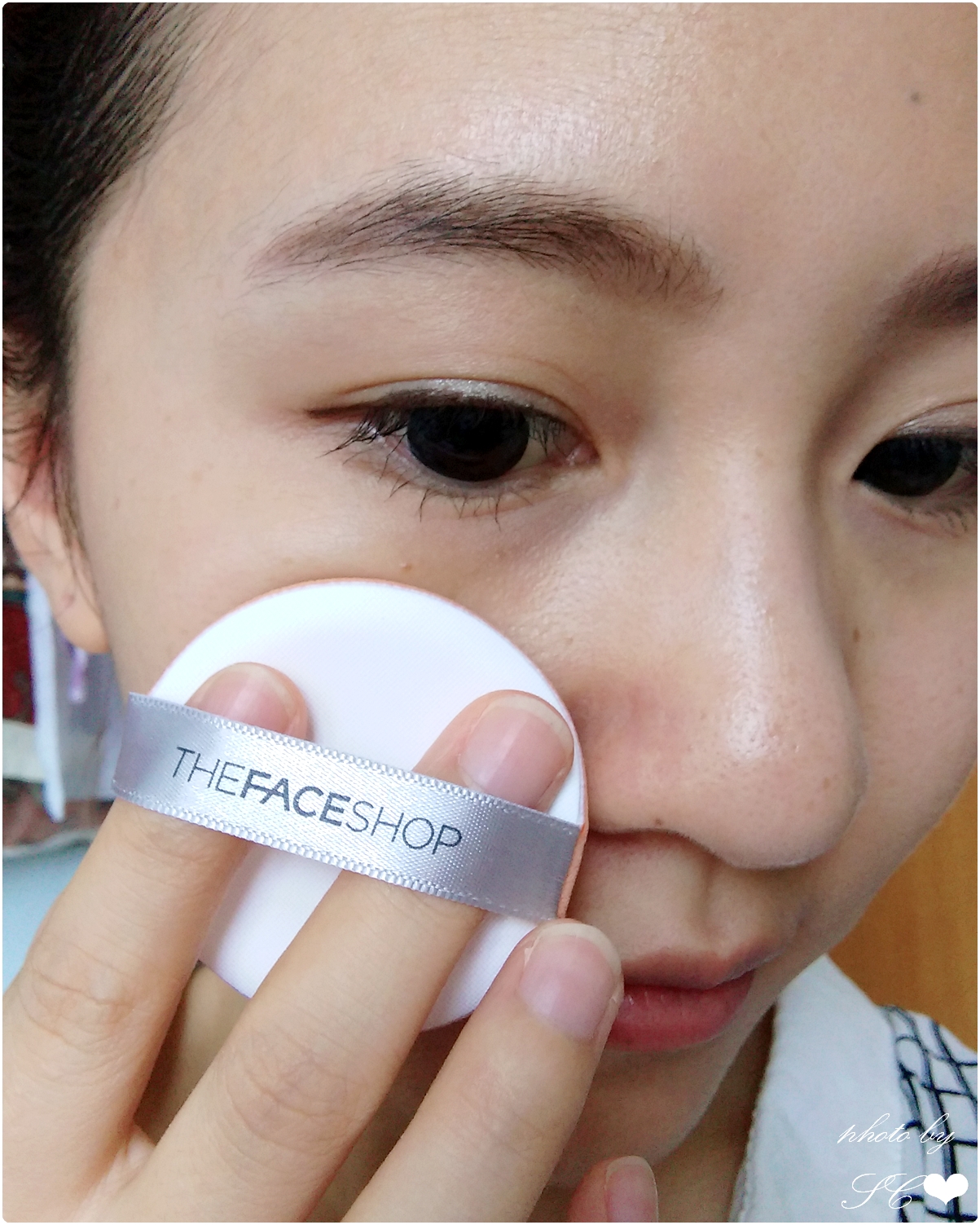 這天用來做補妝使用,只需要噴上保濕噴霧,用紙巾搽乾後就可以直接用上【THEFACESHOP控油水潤氣墊粉底】