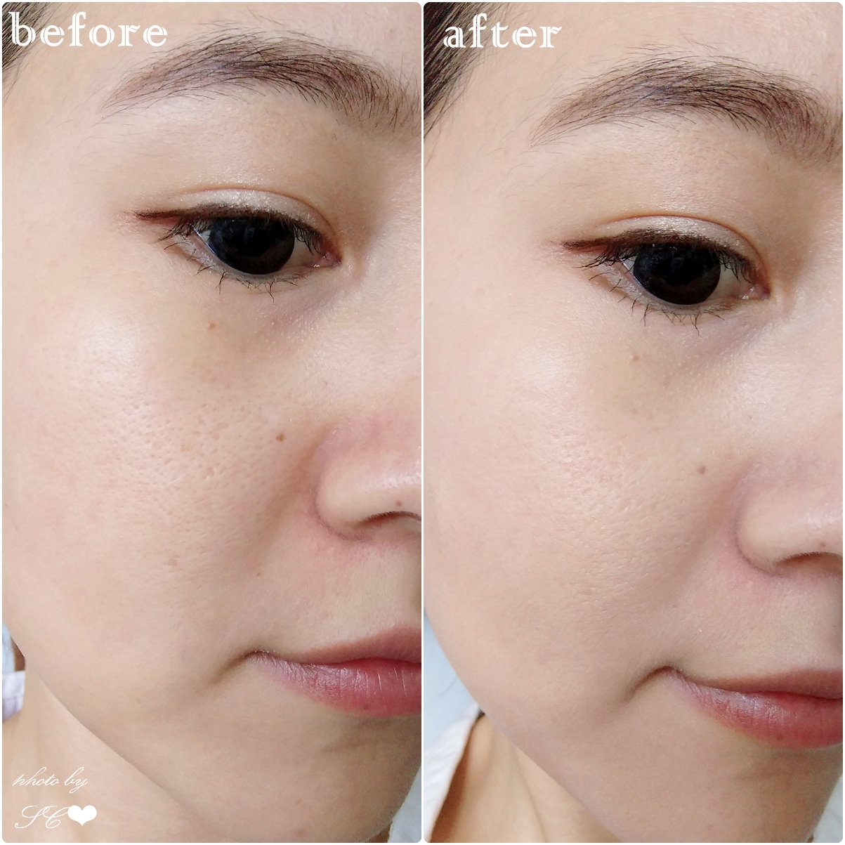 使用後,毛孔被修飾了不少,遮瑕功效非常不錯