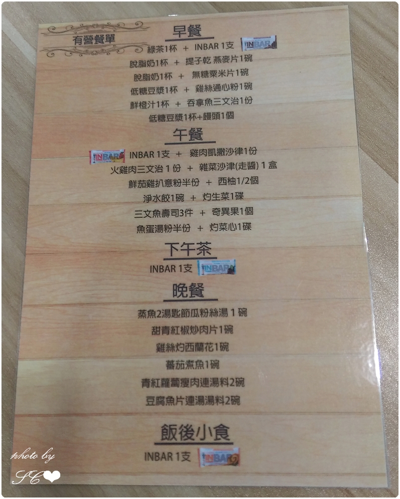 彩豐行還貼心地提供了INBar的有營餐單,讓大家可以健康地瘦身而不傷身