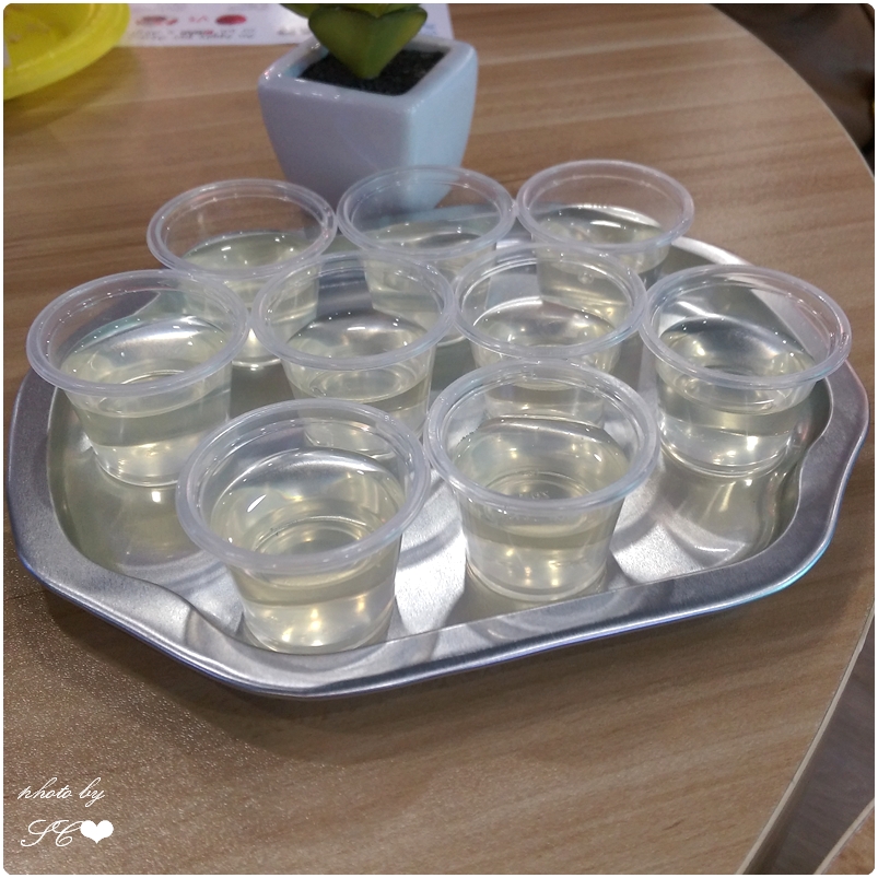 試飲的麵包汁加了水稀釋,但是說真的味道不太好喝,應該要加入果汁才比較容易接受