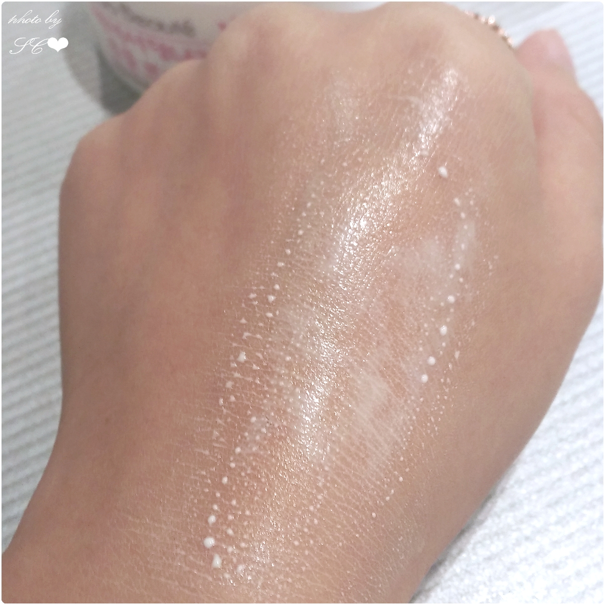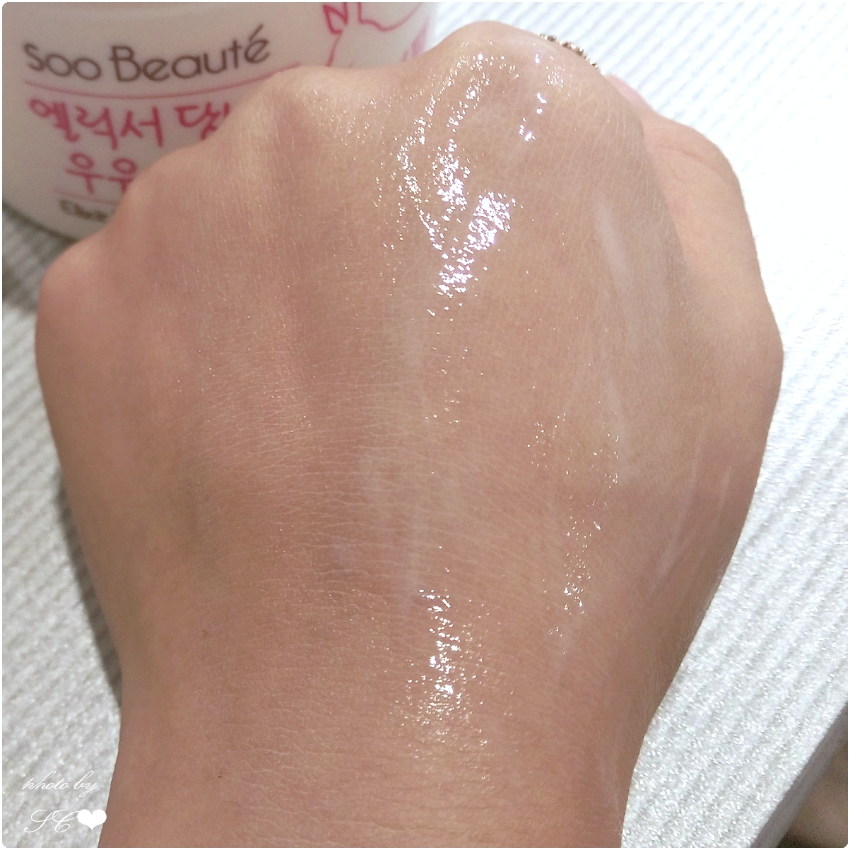 推開可以變得水珠,再稍加按摩後立刻就被肌膚吸收了