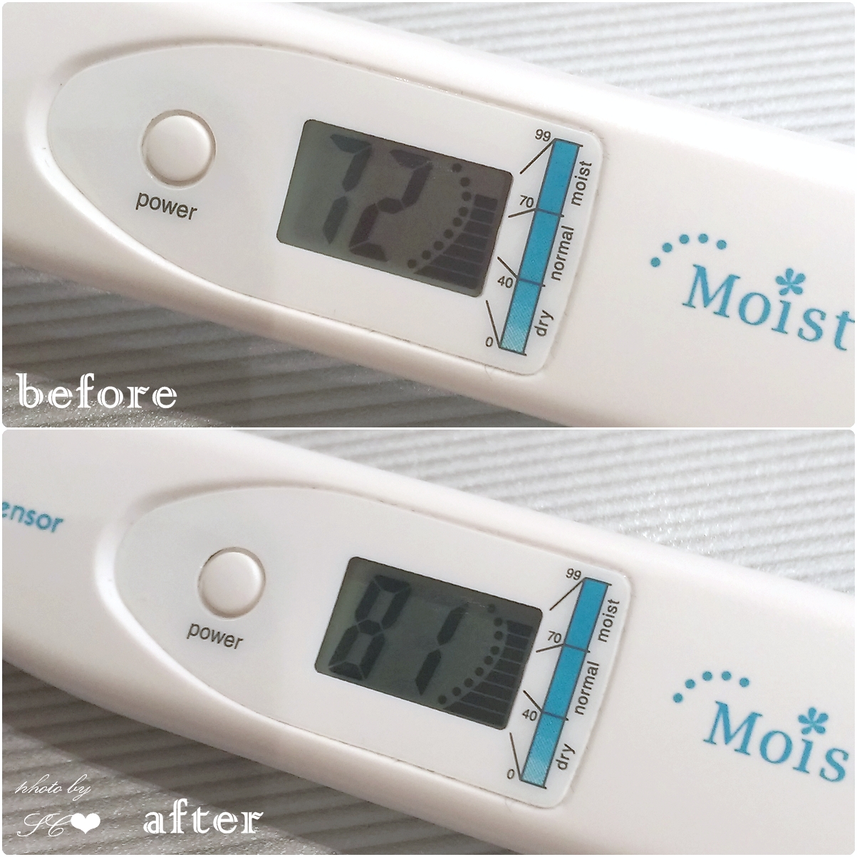 活動現場測試手背肌膚水分,發現塗上【驢奶亮白露珠面霜】後肌膚的水分立刻提升不少