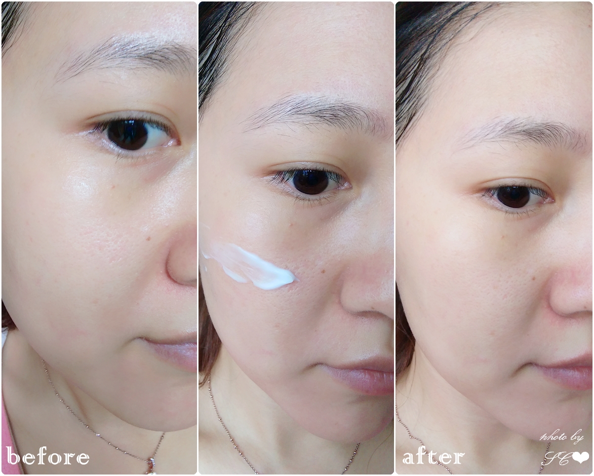 使用後肌膚感覺水潤有光澤,而且感覺很清爽,大概是因為面霜化為水珠狀的質地完全被肌膚吸收了
