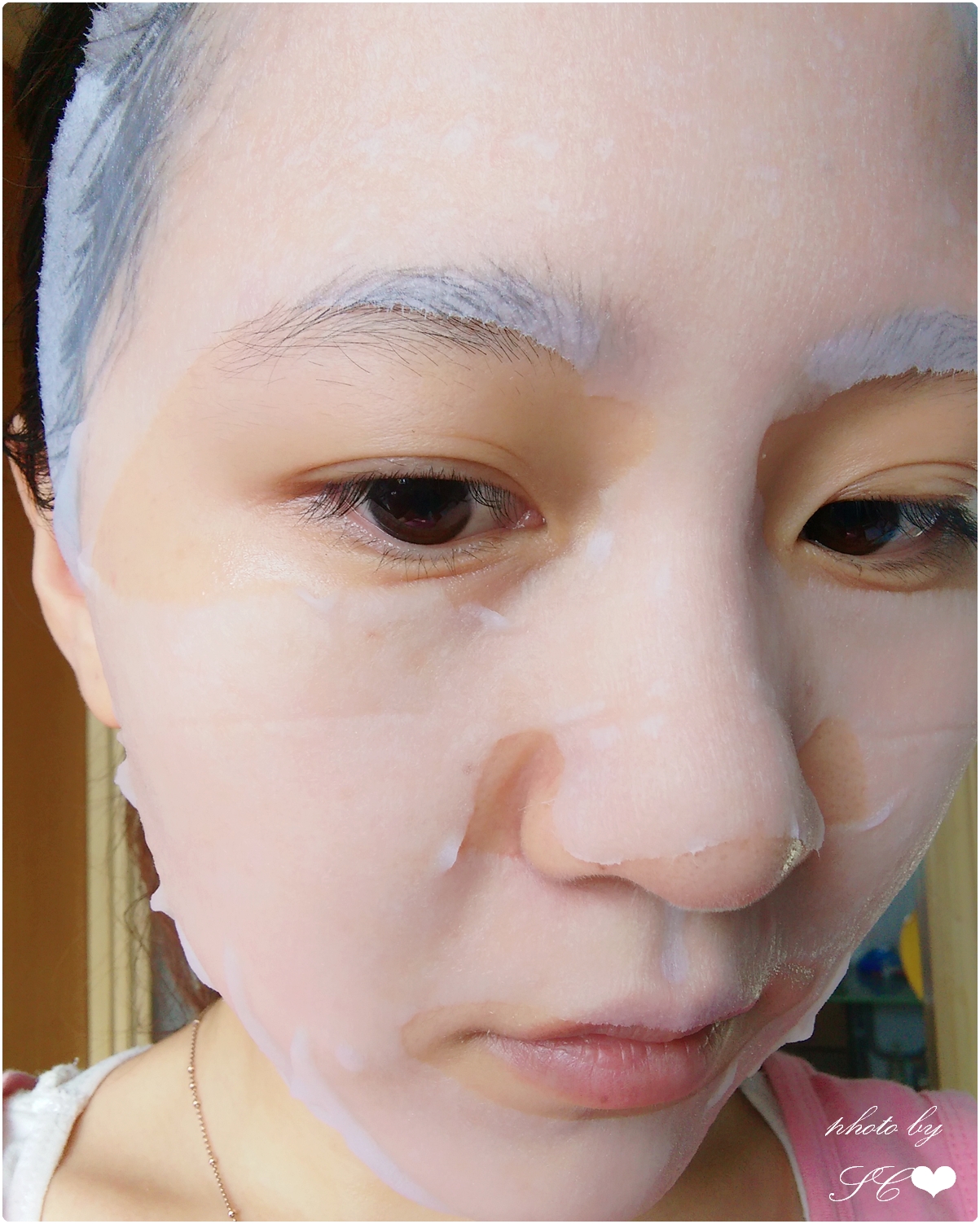 不過設計感覺有點奇怪,特別是嘴巴和眼睛的部位感覺好像特別大,不過還好面膜夠透薄貼服,所以調整一下就可以了