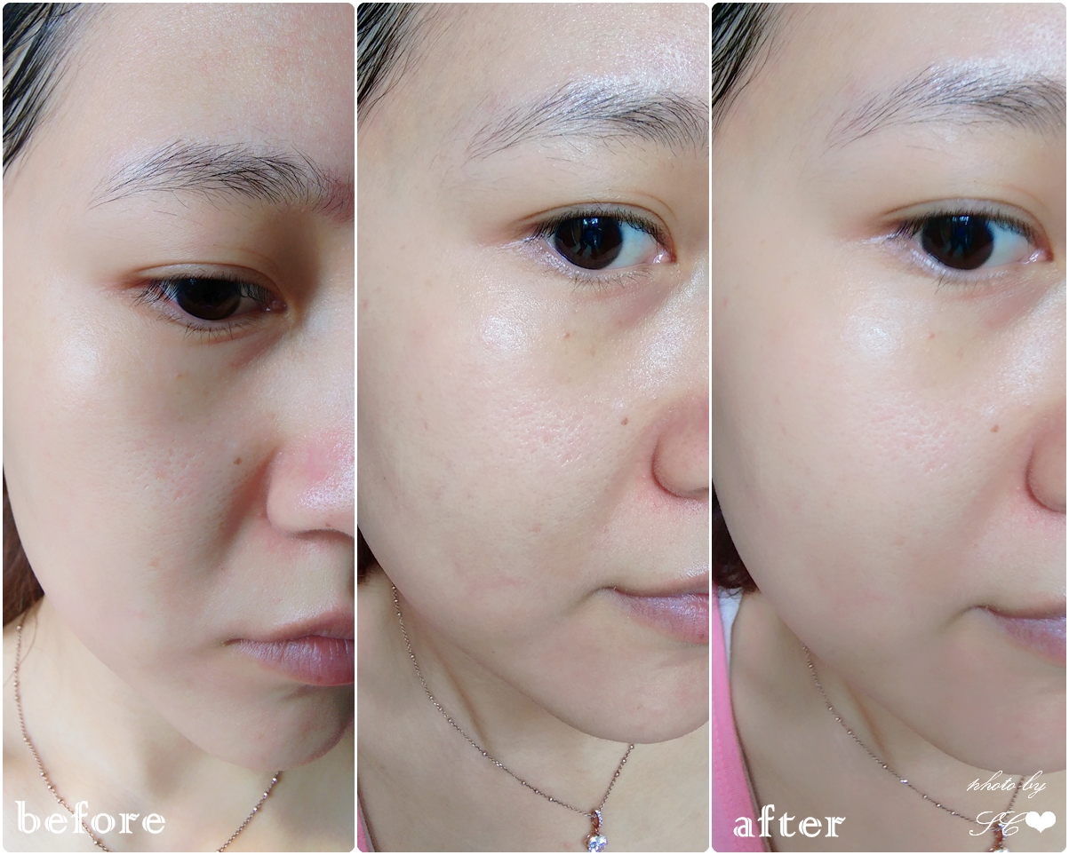 再稍稍按摩後,殘留的精華很快就被肌膚吸收了