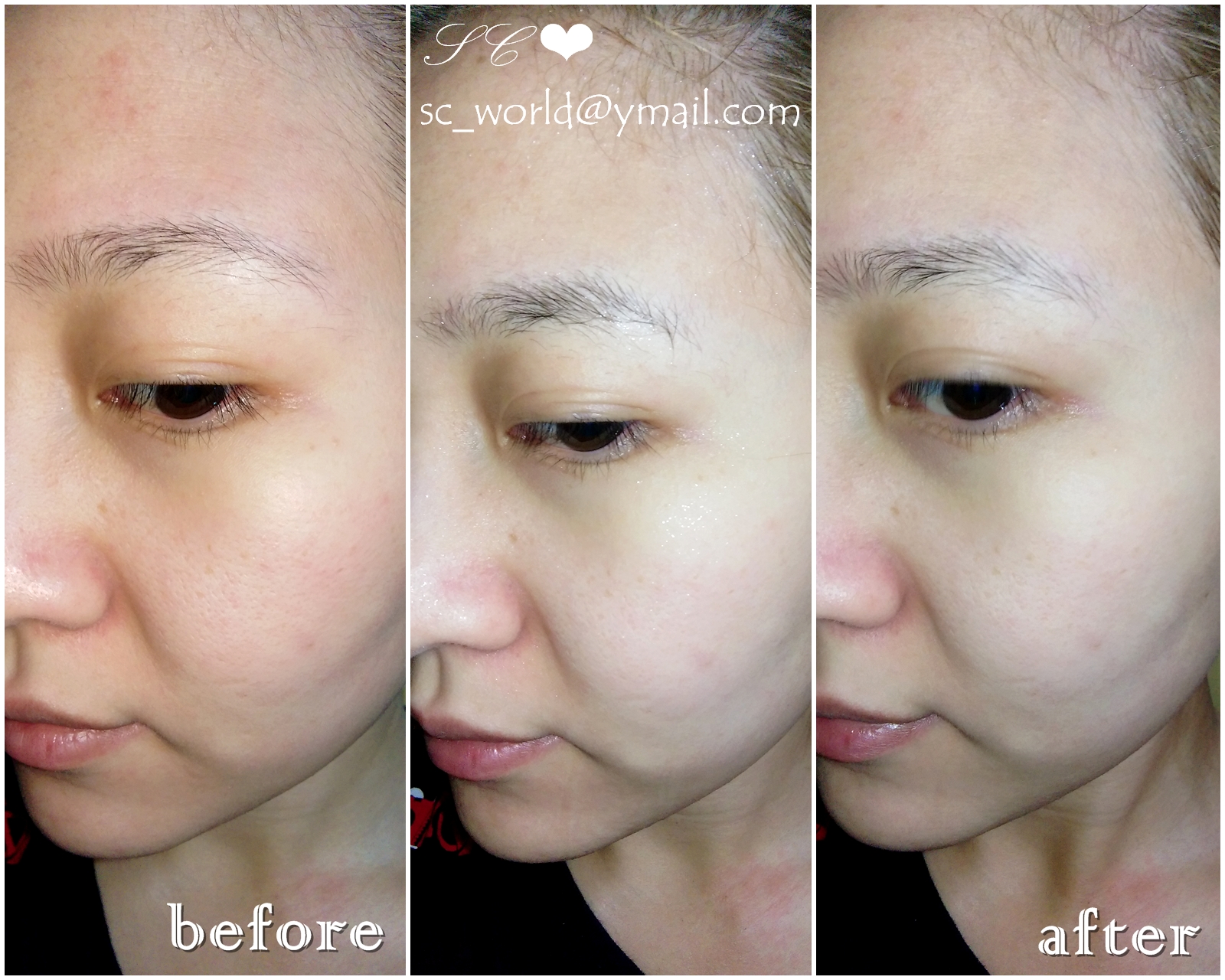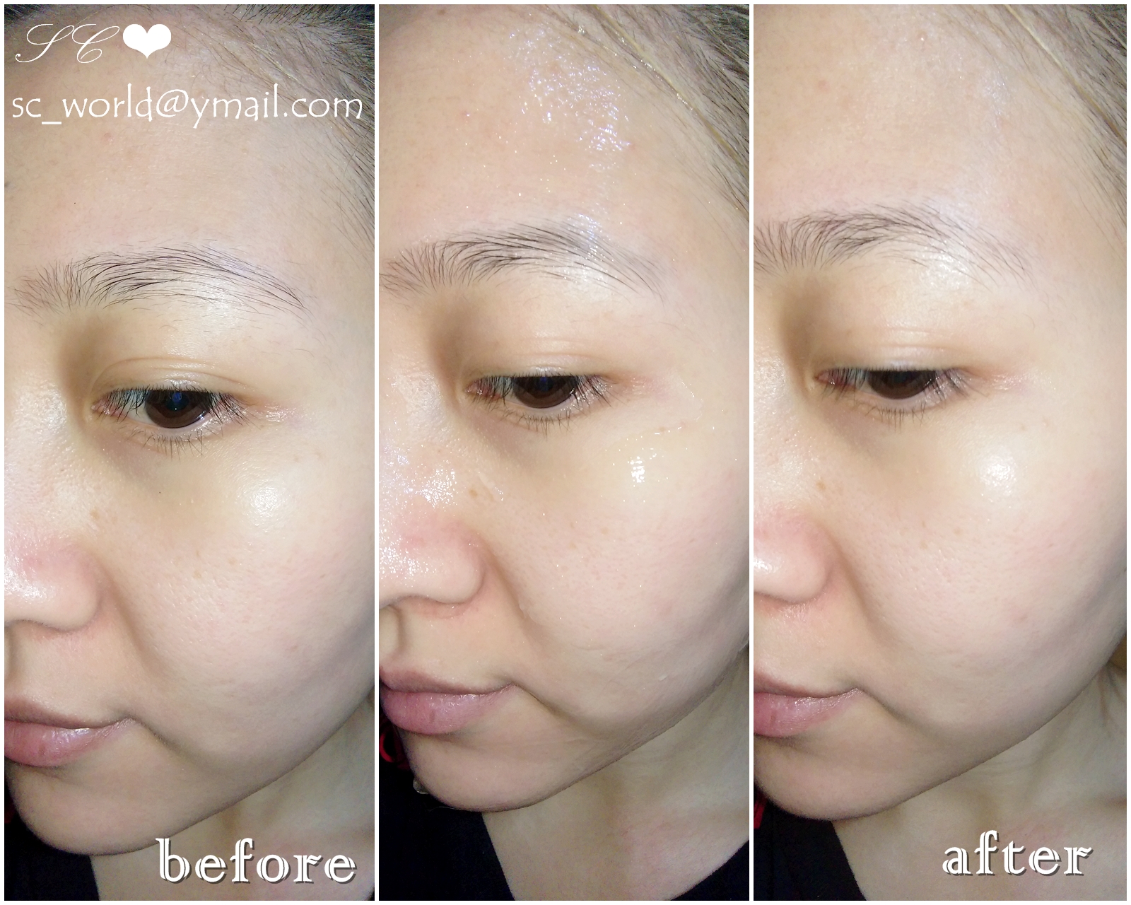 而精華液稍稍按摩後很快就被吸收了