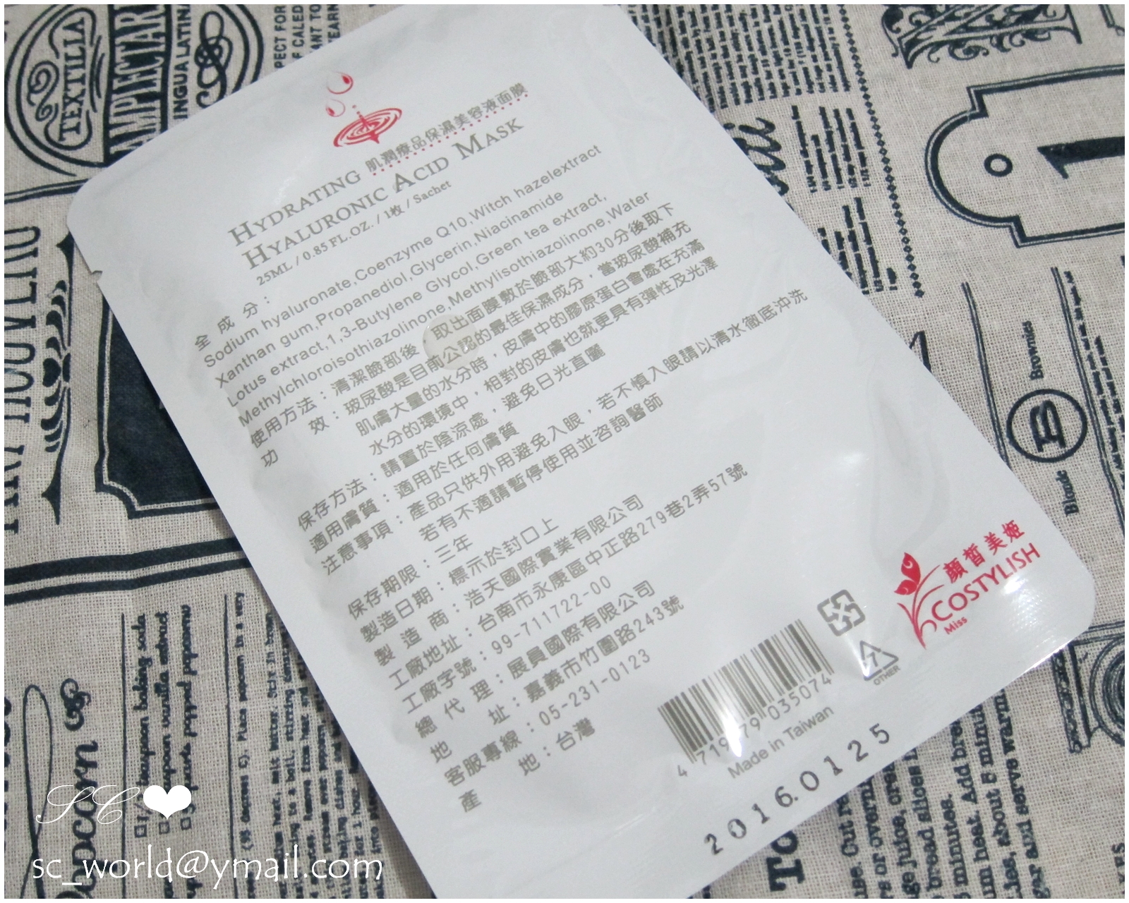 每片面膜背面都有印上成分標籤及到期日