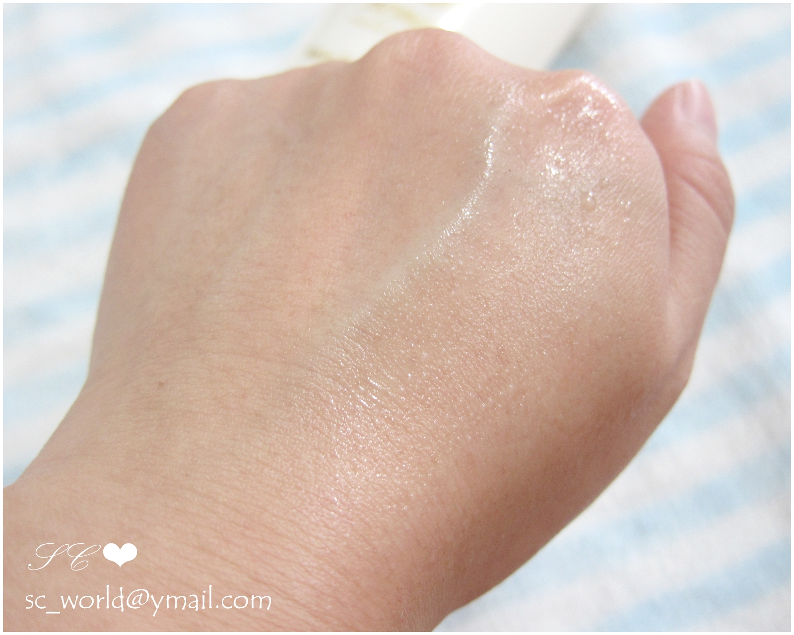 變成水珠的凝膠就很快被肌膚吸收了