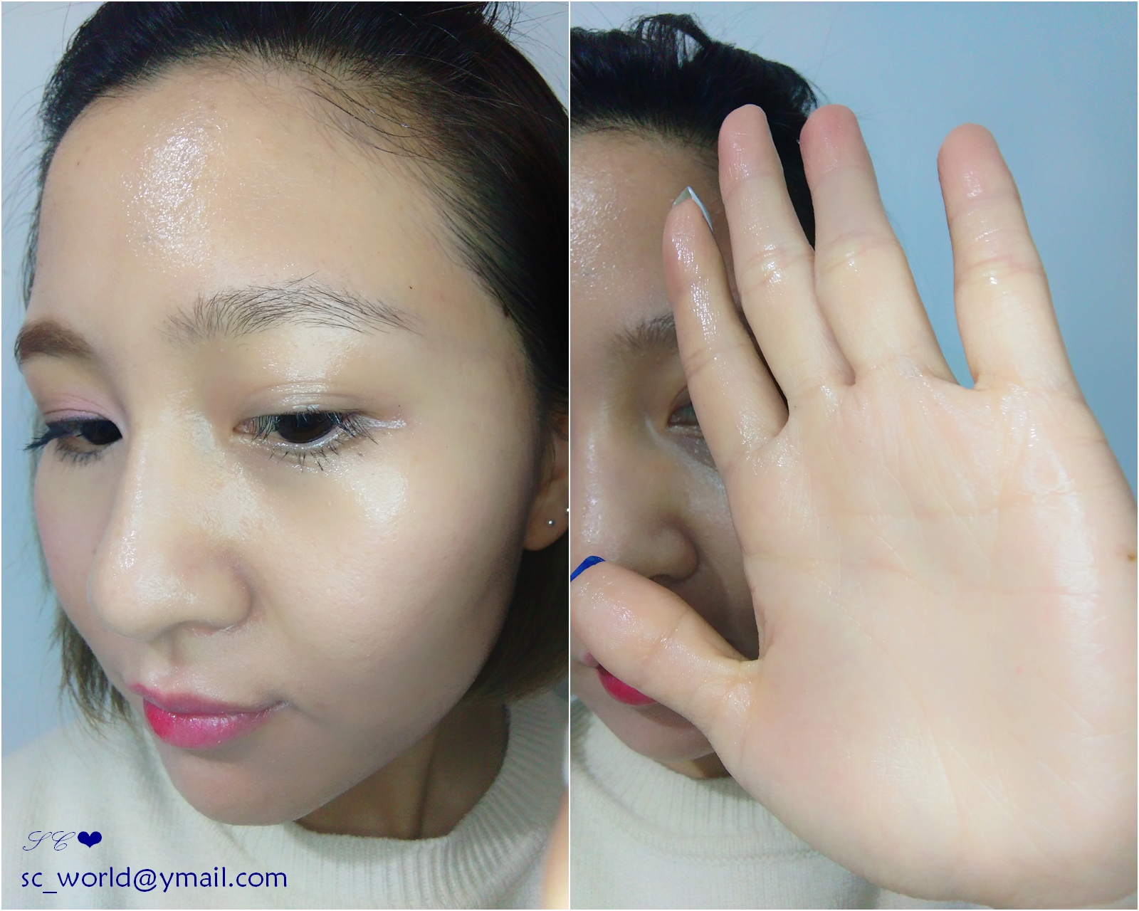 使用精華露後幾個小時卻沒有大量泛油的情況