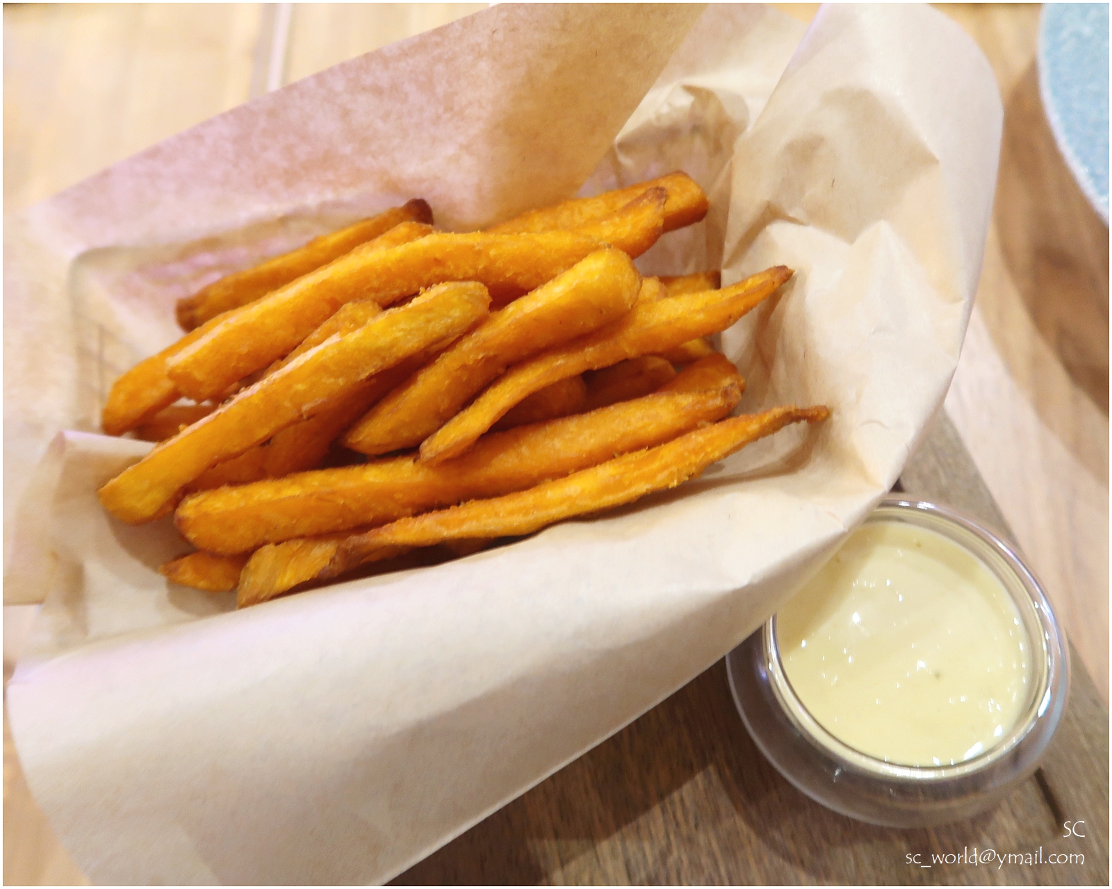 香甜的蕃薯條,配上咸香幼滑的蒜泥蛋黃醬