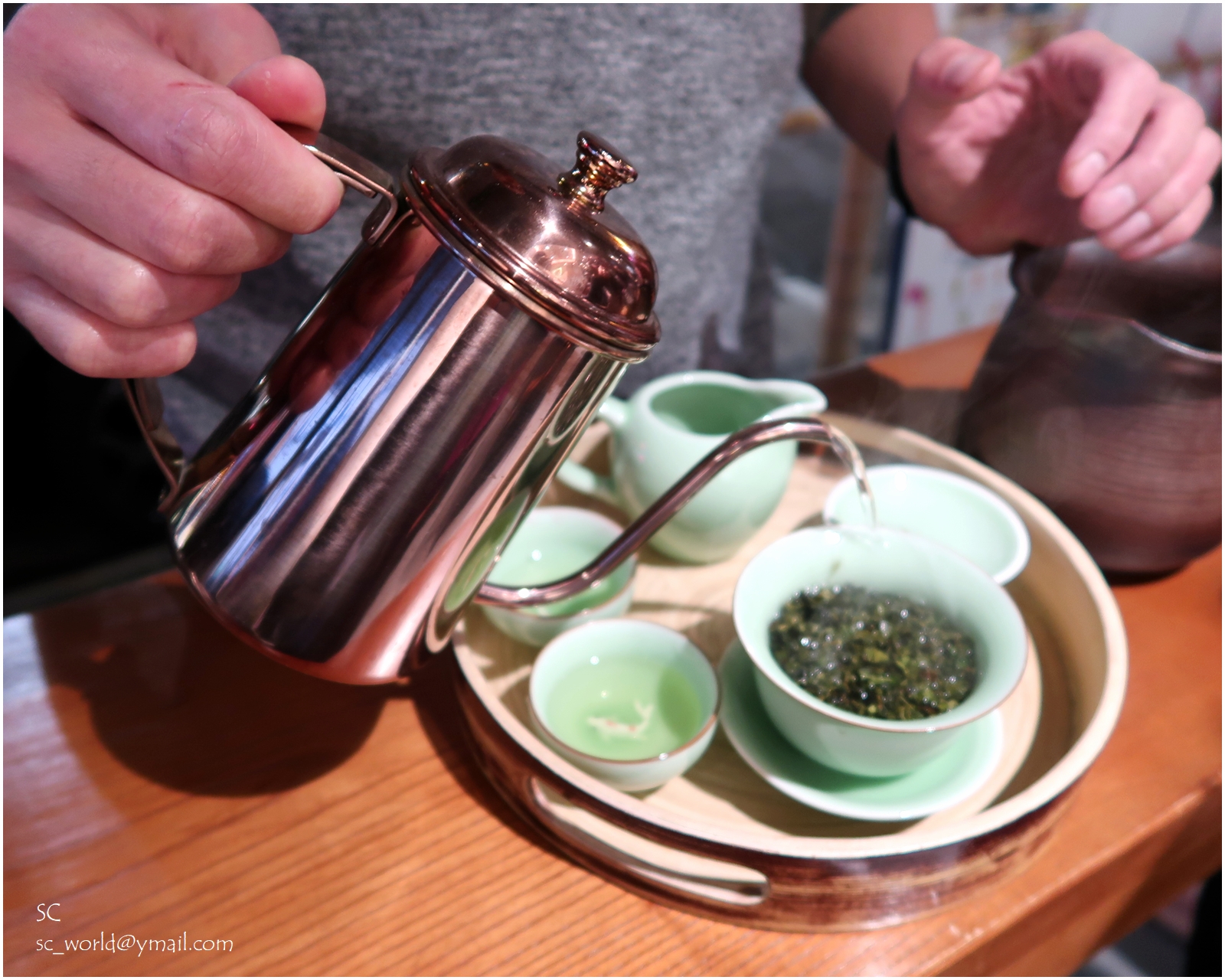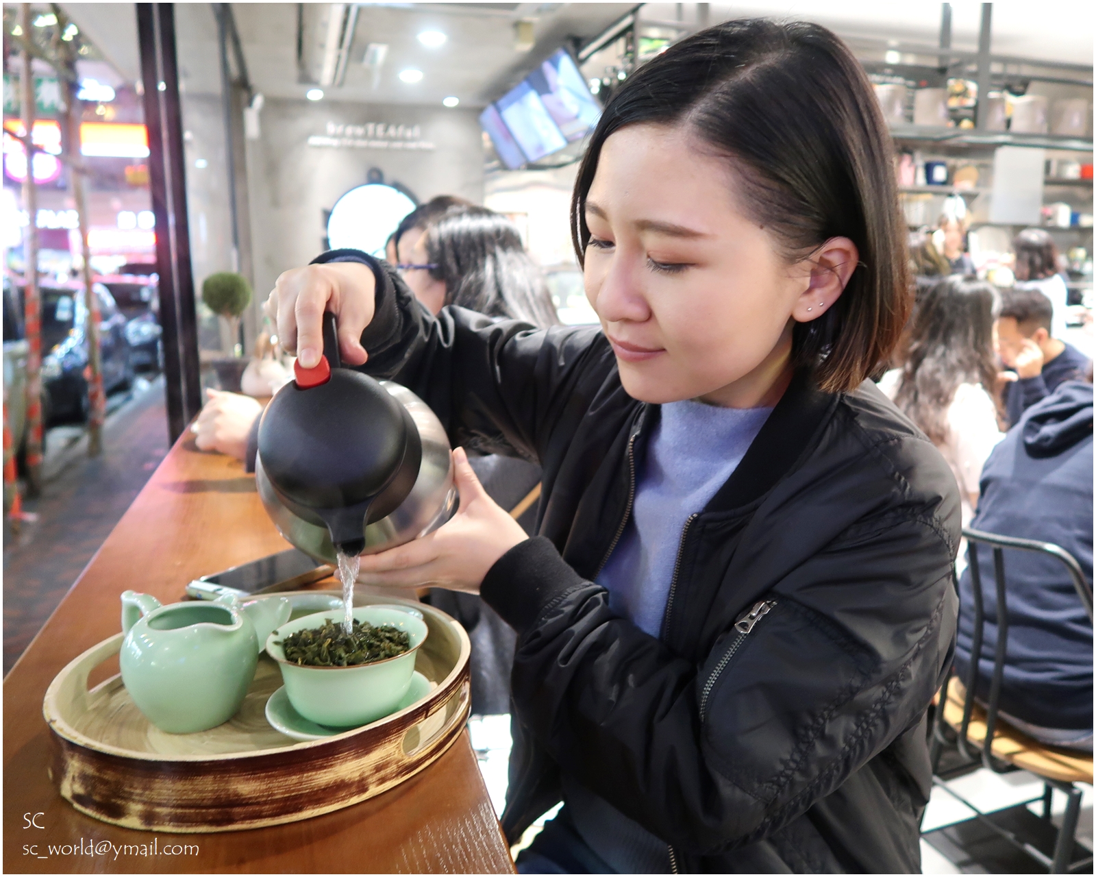 在鬧市中悠閒地慢慢品嚐自己沖泡的茶