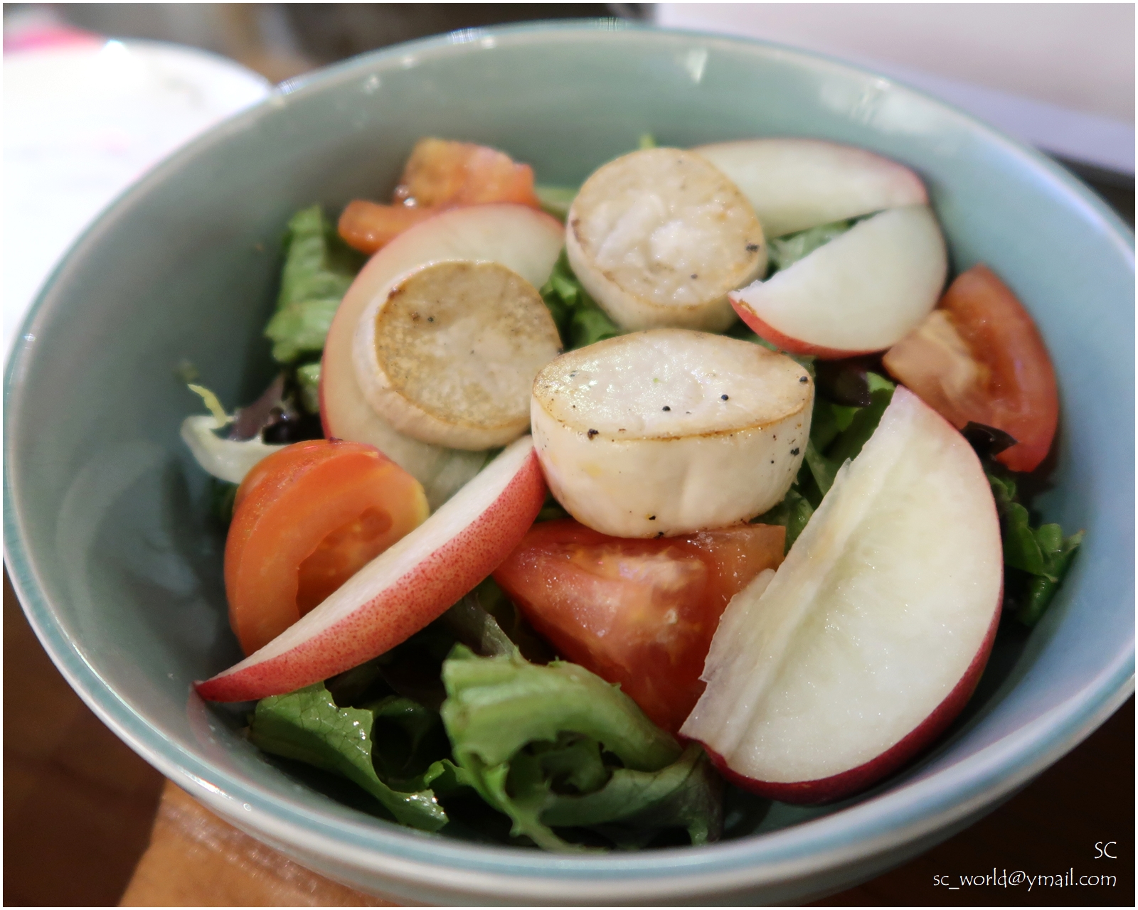 帶子水蜜桃沙律中的帶子是以菇代替,很清新爽口